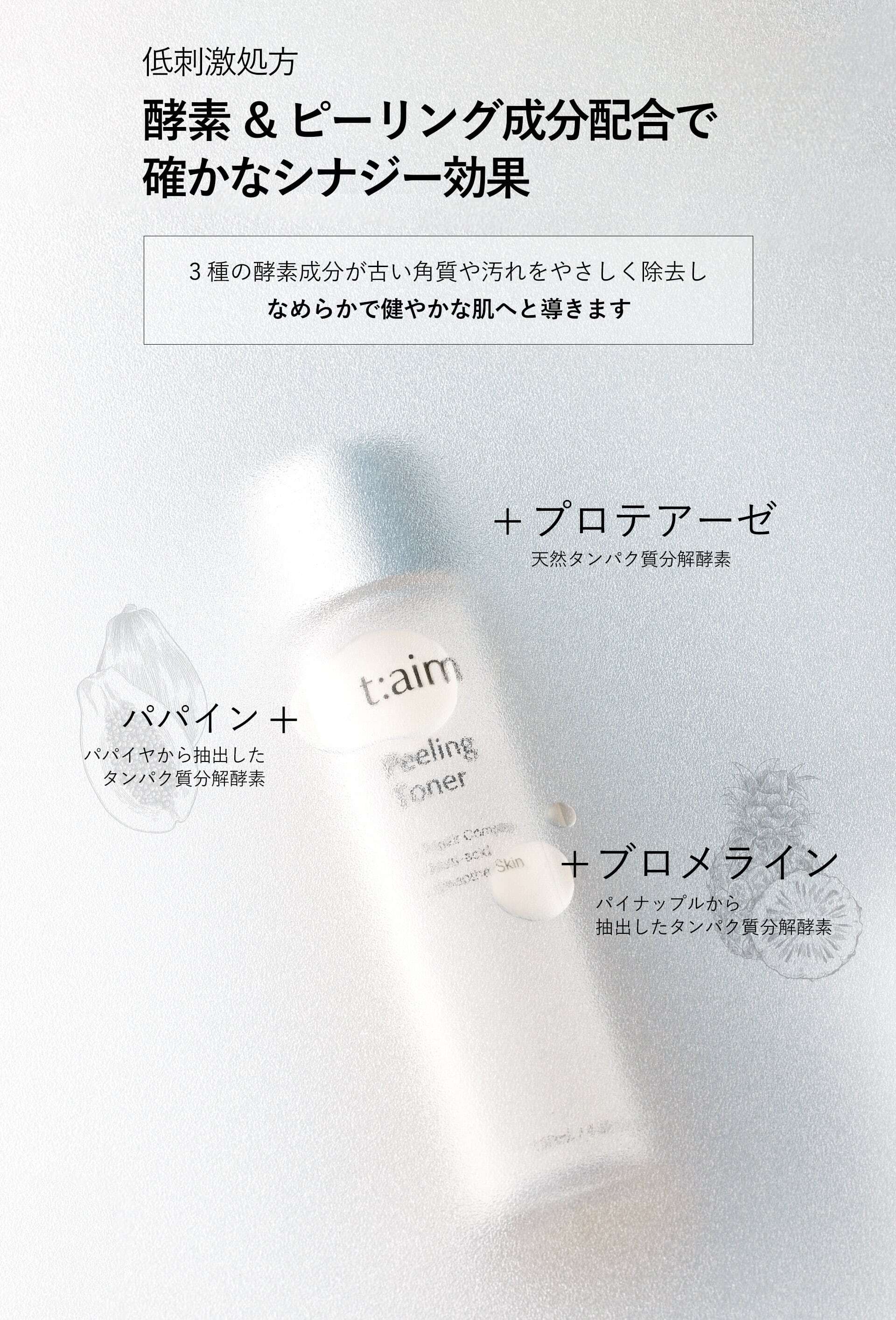 ダブルレイヤー処方で古い角質や余分な皮脂を取り除き※1、潤いをチャージ。肌のキメを整えるピーリングトナー。