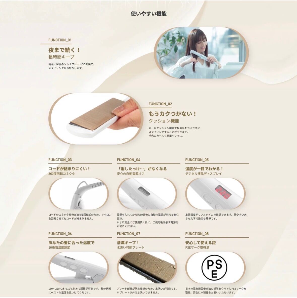 シルクプレートの効果でスタイリングが長続きします。