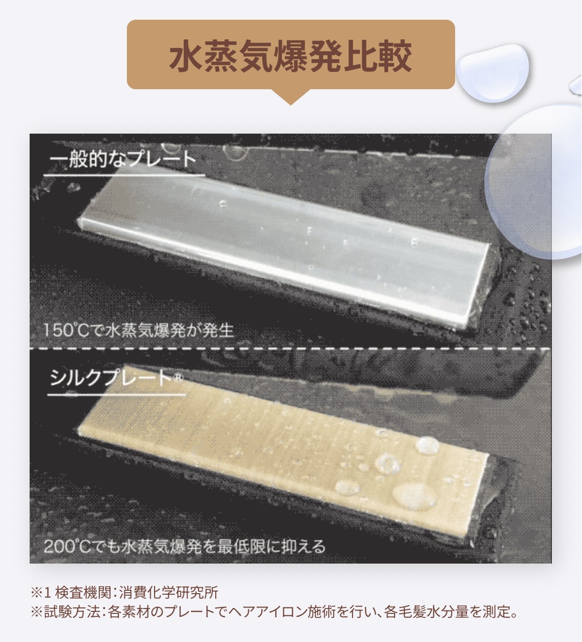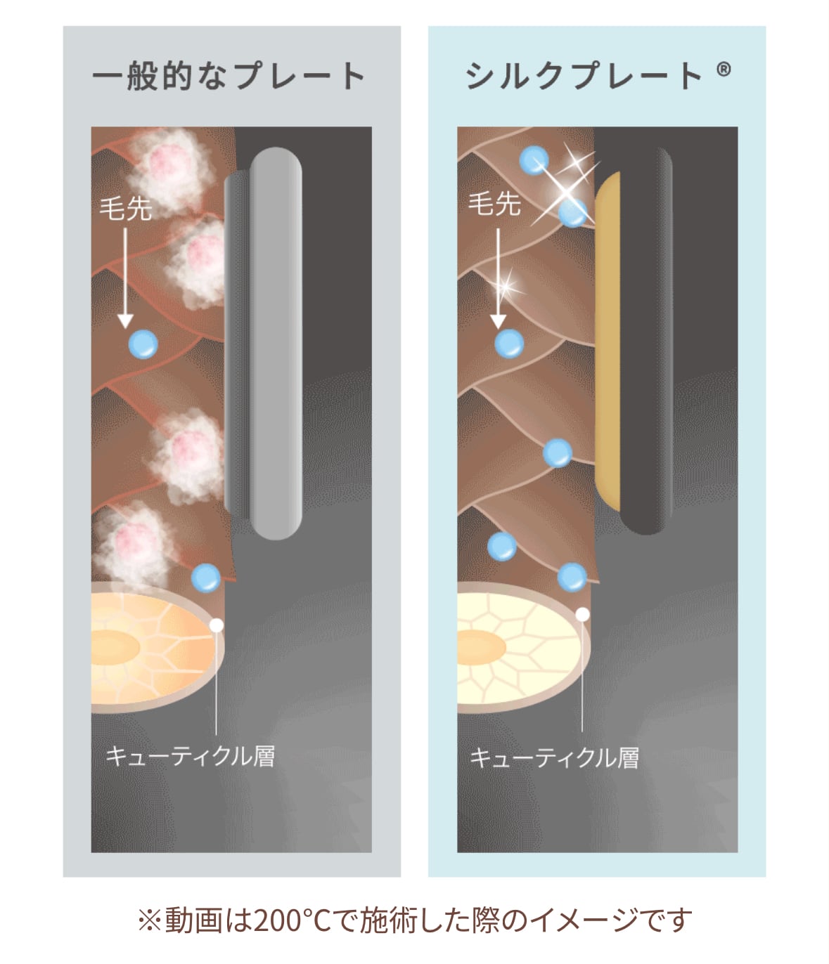【シルクプレート®︎】は、200℃でも『水蒸気爆発』が起こらない優れた保湿力をもっています。