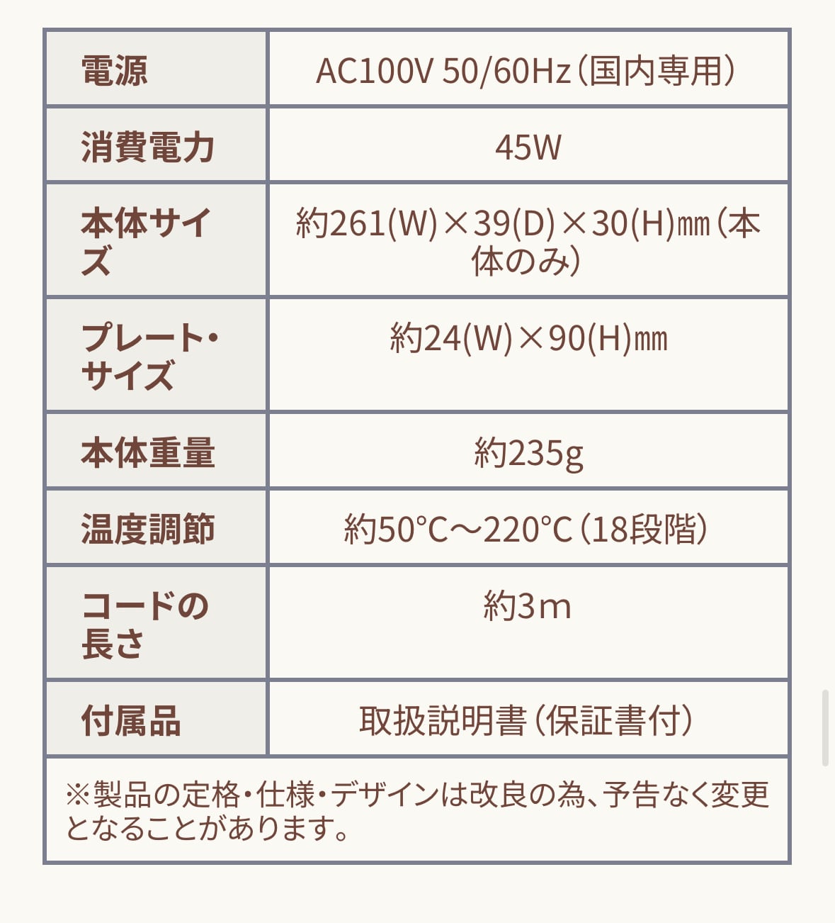 50~220℃まで、10℃毎の18段階で温度調節が可能。