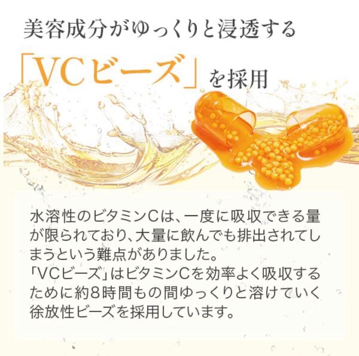 ビタミンCを効率よく吸収するための徐放性ビーズを採用。